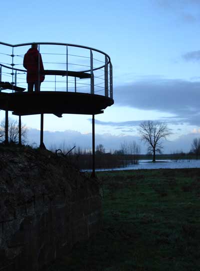 Als je 85 meter hoog boven het West-Vlaamse land de weidsheid van lucht, land, water en lieflijk ogende stadjes overziet, terwijl de leeuw zwart op geel wappert in de wind, dan ben je onder de indruk. Zojuist zijn we met de lift naar de top van de IJzertoren in Diksmuide gegaan. Voor we de afdaling van 22 verdiepingen expositie gaan doen, bekijken we de rivier de IJzer, de stad en de monumenten vanaf dit bewijs van potentie van de Vlaamse Leeuw. De hoogte, de expositie over Oorlog, Vrede en Vlaamse Ontvoogding en de monumenten leveren me meerdere malen koude rillingen op, om zeer uiteenlopende redenen.